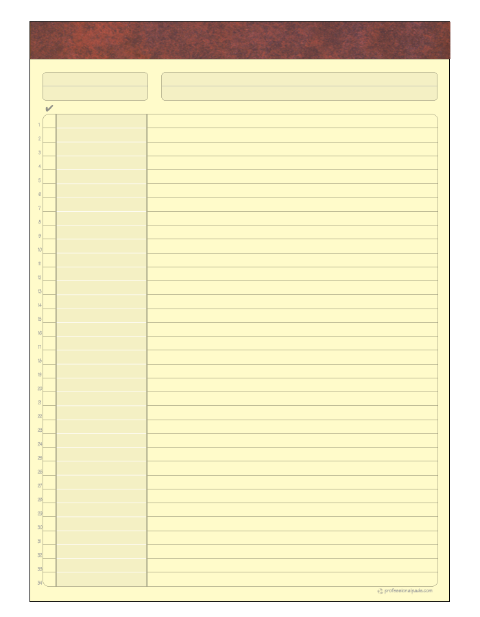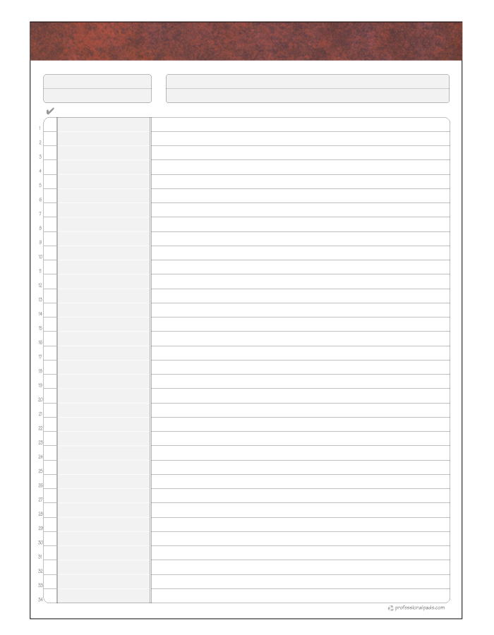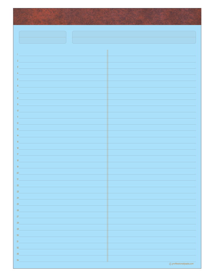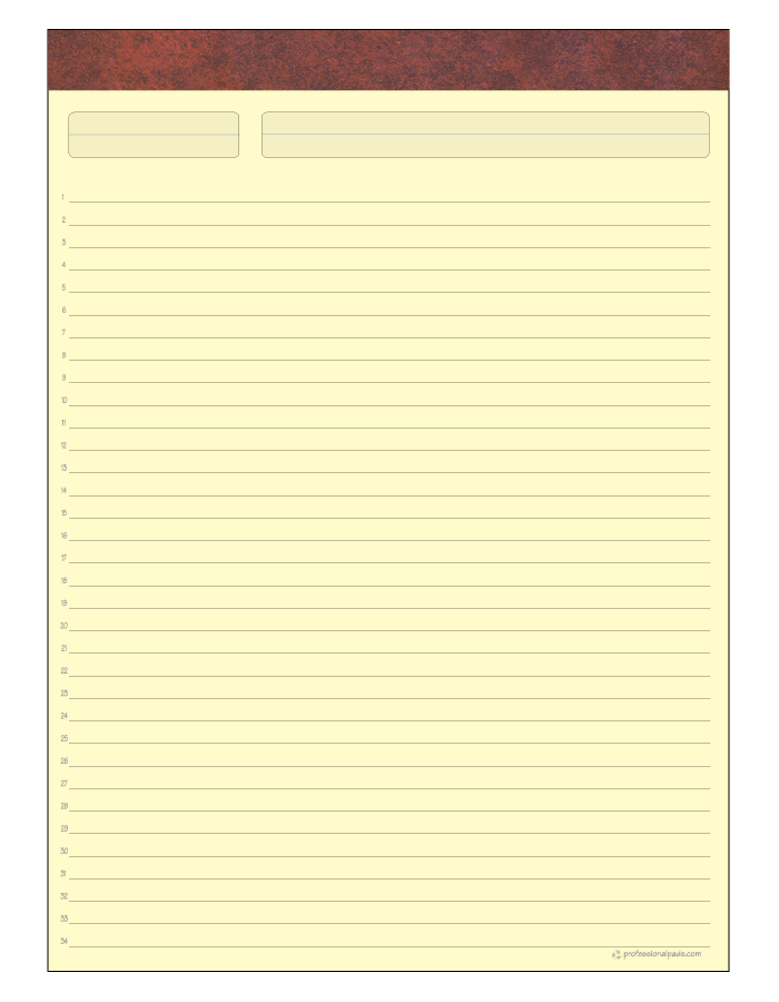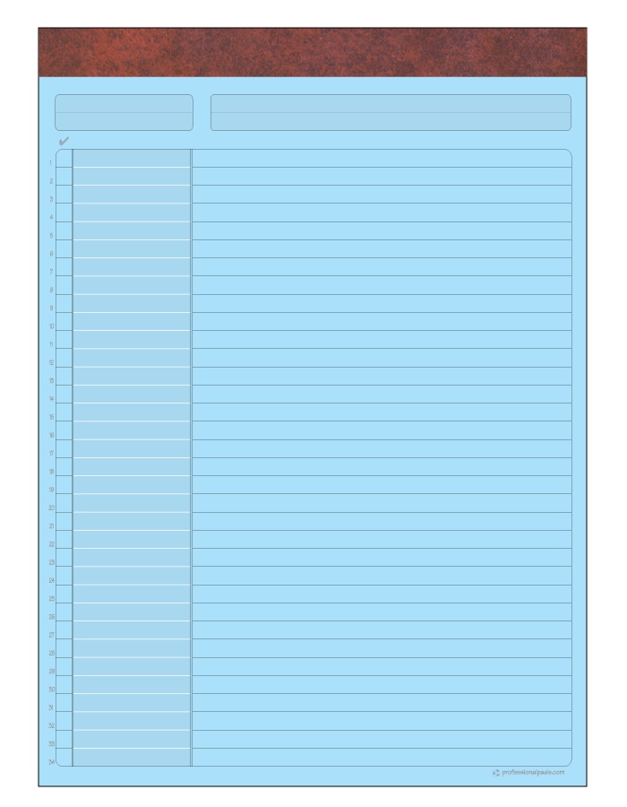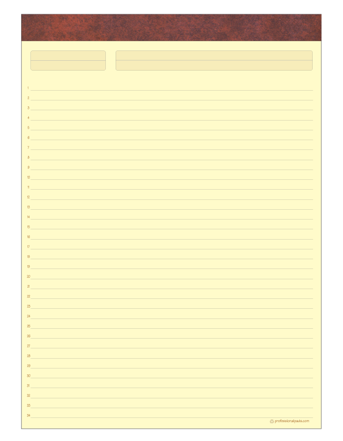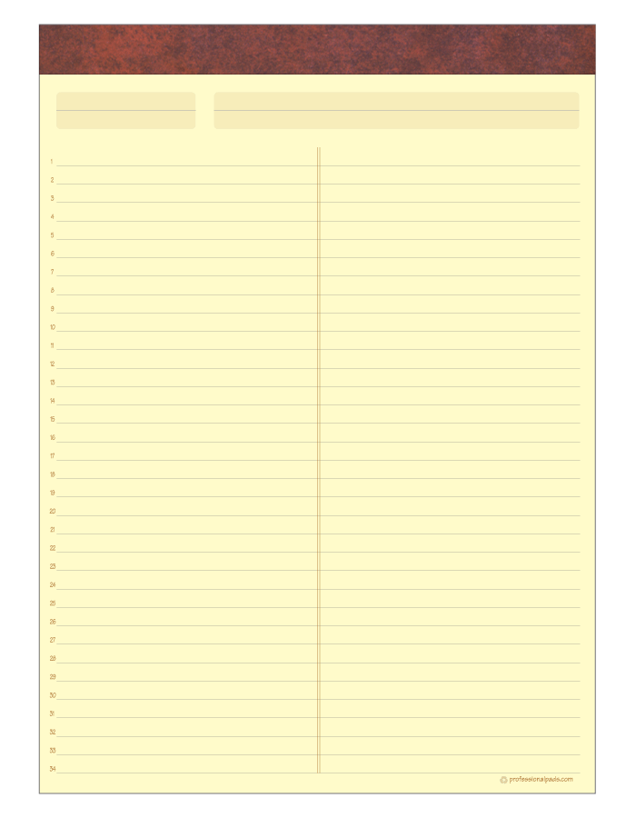 8 1/2" x 11 3/4" Professional Pads. Smooth #24 Bond/#60 Offset, 30% Recycled Paper, 80 Point Chipboard Back, Brown Marble Leatherette Tape Binding.